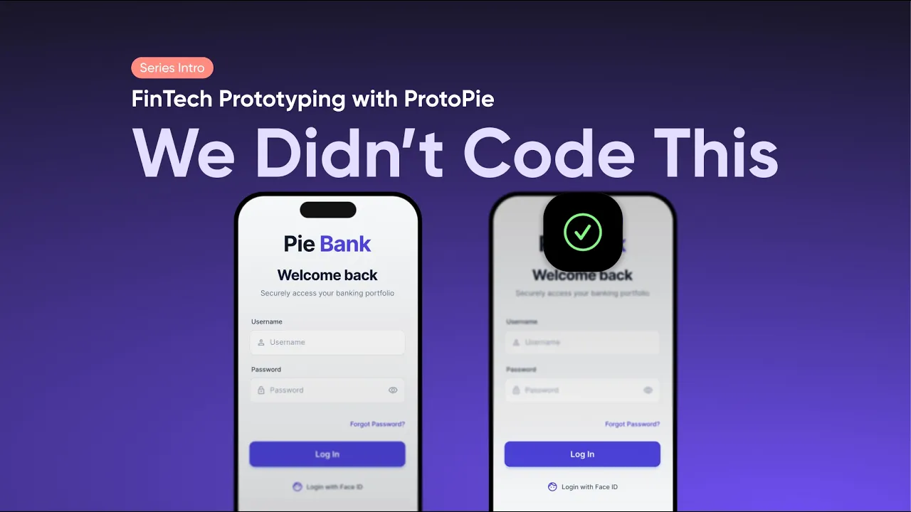 At the end of this series, we'll release the complete Pie Bank ProtoPie files, all four chapters, 14 connected ProtoPie scenes, every interaction, open to explore in ProtoPie.