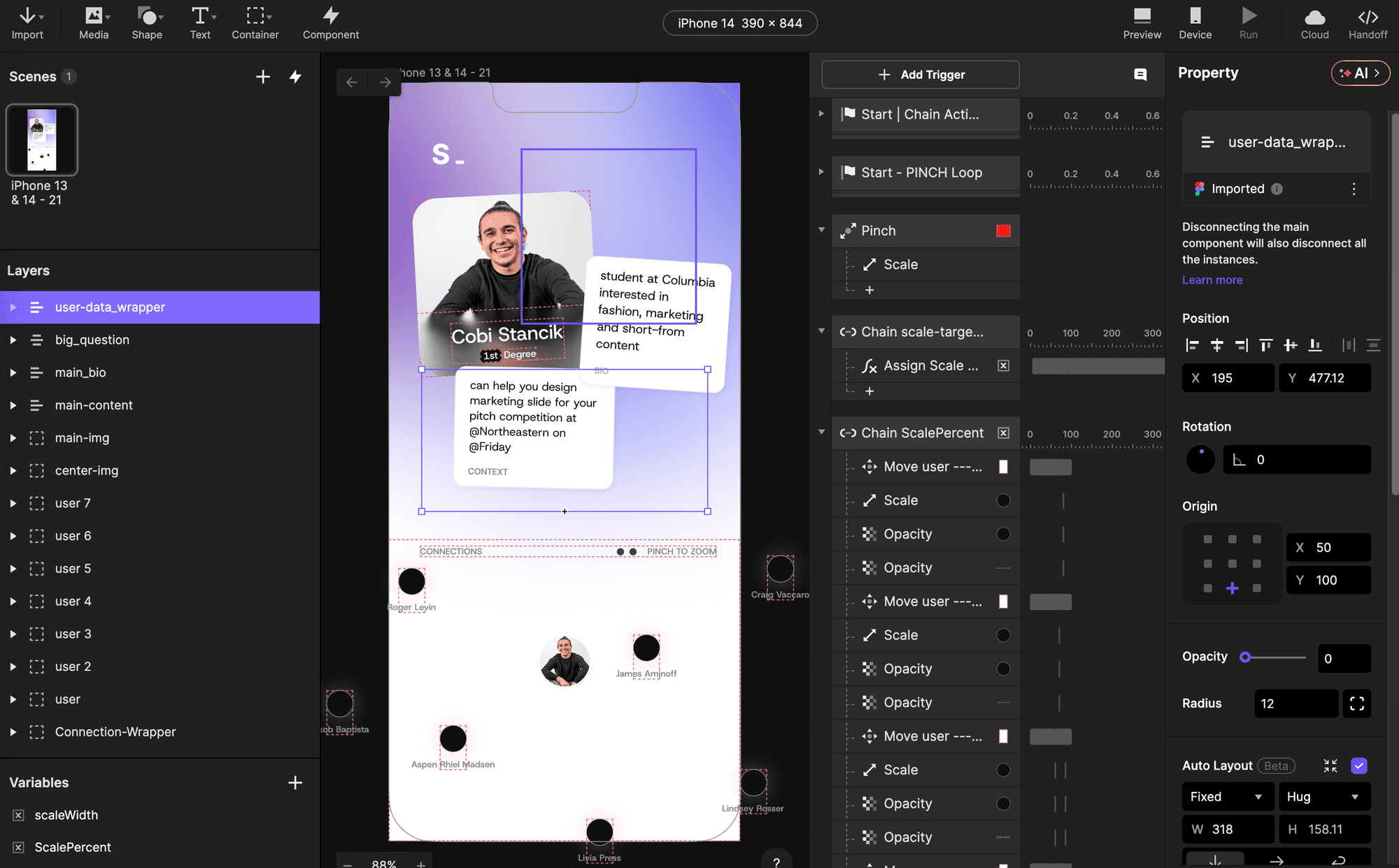 With multi-screen interactions, you don’t have to explain cross-device flows to stakeholders, you can actually start demonstrating them with production-level realism. By syncing multiple devices over the same network, you can simulate live interactions—like real-time chat or instant payments—that look and act like the finished product.