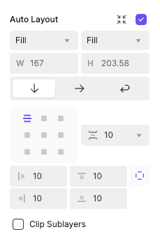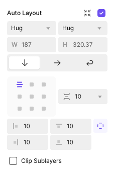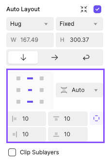 布局属性可对自动布局容器内子图层的对齐(Alignment)、内边距(Padding)和间距(Gap)进行精细控制。这些设置可确保设计更加精致且一致。
