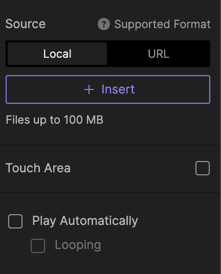 ProtoPie 支持最大 100 MB 的 MP4(H.264)、WebM 和 MOV 视频文件。不过,在将视频导入 ProtoPie Studio 之前,务必确保视频满足以下条件,以便在移动设备上的 ProtoPie Player 中顺畅测试: