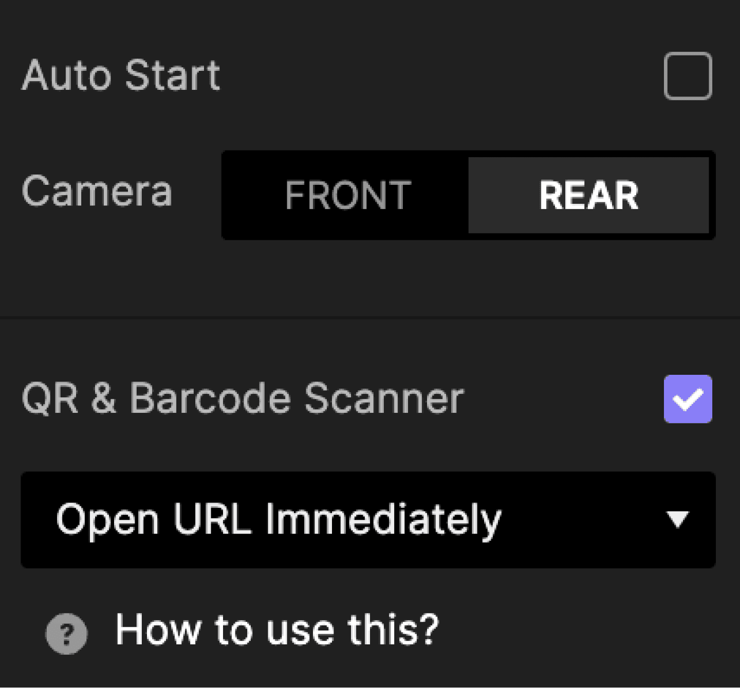 你可以将智能设备原生相机的输出作为原型中的一个图层,甚至可以扫描二维码和条形码。此功能仅在使用 ProtoPie Player 测试原型时可用。在预览窗口或网页浏览器中运行原型时,将显示占位内容。