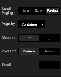 你可以在容器的属性面板中调整其滚动或分页属性。要在容器内启用滚动或分页图层,请从图层面板将它们拖入目标容器。