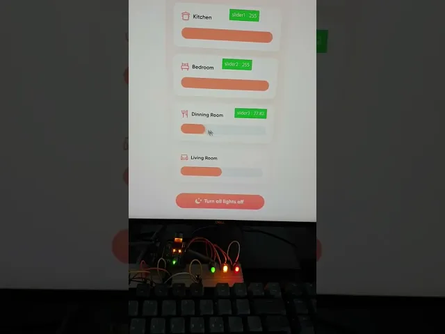 #include <string.h> struct MessageValue { String message; String value; }; struct MessageValue getMessage(String inputtedStr) { struct MessageValue result; char charArr[50]; inputtedStr.toCharArray(charArr, 50); char* ptr = strtok(charArr, "||"); result.message = String(ptr); ptr = strtok(NULL, "||"); if (ptr == NULL) { result.value = String(""); return result; } result.value = String(ptr); return result; } int firstLED = 3; int secondLED = 5; int thirdLED = 6; struct MessageValue receivedData; void setup() { pinMode(firstLED, OUTPUT); pinMode(secondLED, OUTPUT); pinMode(thirdLED, OUTPUT); Serial.begin(9600); Serial.setTimeout(10); // Set waiting time for serial data to 10 milliSeconds } void loop() { while (Serial.available() > 0) { // Take out strings until Serial is empty String receivedString = Serial.readStringUntil('\0'); // From 1.9.0 version, We can use '\0' as delimiter in Arduino Serial receivedData = getMessage(receivedString); } if (receivedData.message.equals("FIRST")) { analogWrite(firstLED, receivedData.value.toInt()); delay(30); } else if (receivedData.message.equals("SECOND")) { analogWrite(secondLED, receivedData.value.toInt()); delay(30); } else { analogWrite(thirdLED, receivedData.value.toInt()); delay(30); } }