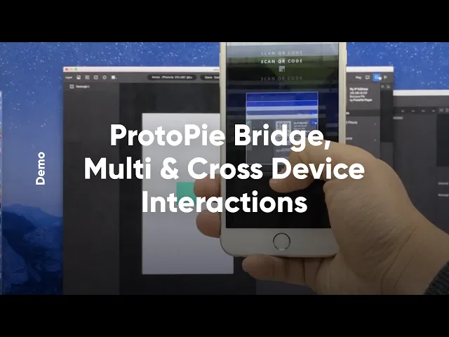 您可以使用 ProtoPie Studio 作为中枢来连接两个原型。此功能适用于所有套餐。使用此方法测试交互时,ProtoPie Studio 必须保持打开状态。