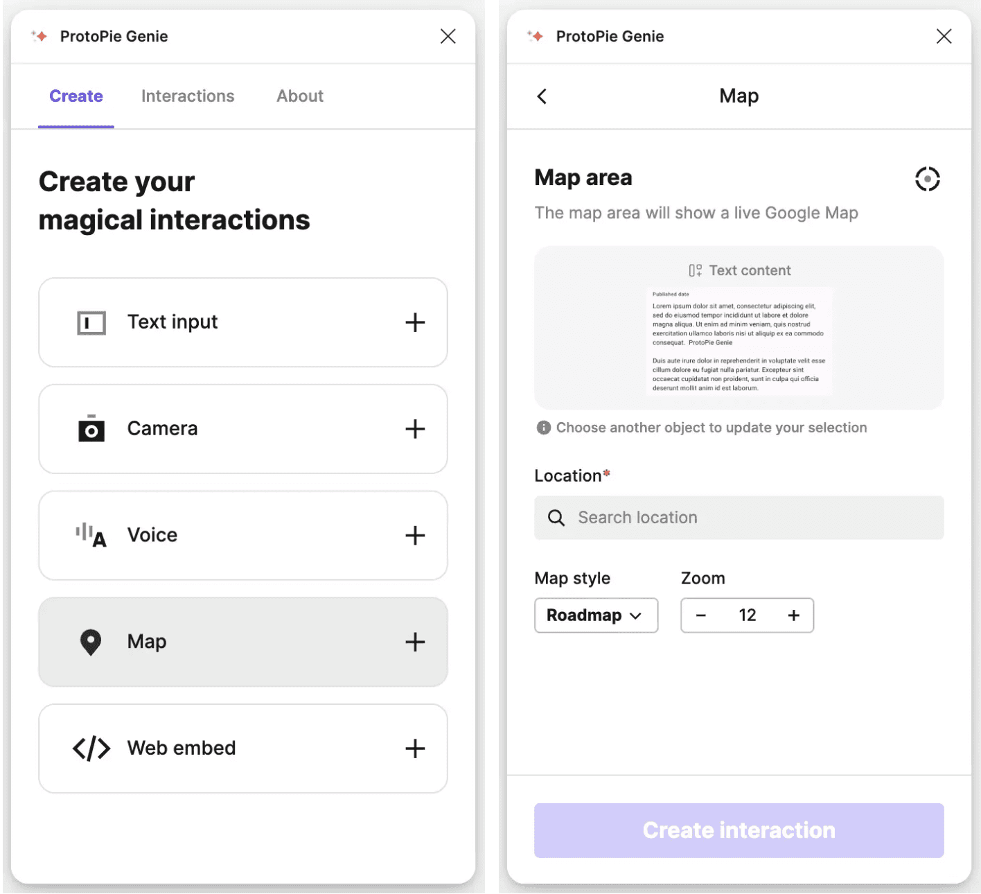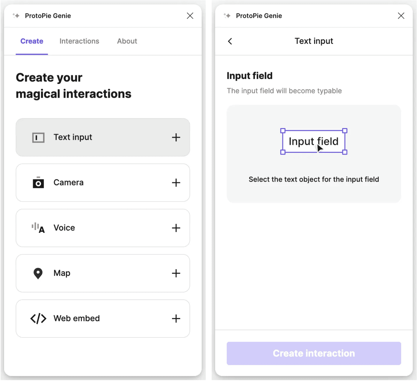 返回 ProtoPie Genie 插件 并打开 “Interactions” 选项卡。