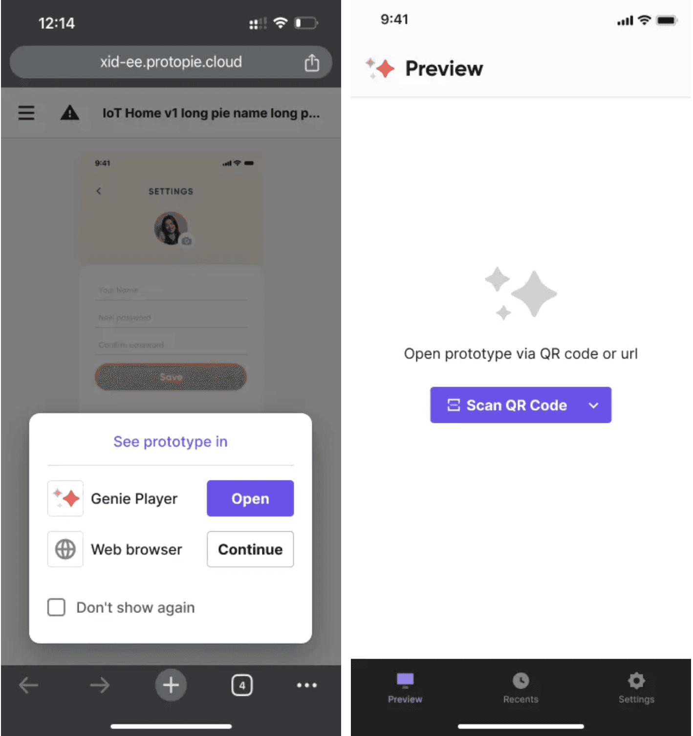 获取适用于 iOS 和 Android 设备的 ProtoPie Genie Player。