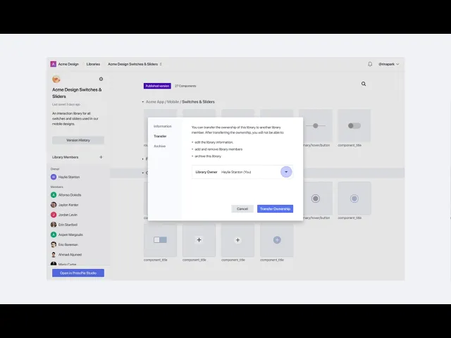 作为资料库所有者,你可以将所有权转移给其中一位资料库成员。在目标团队资料库的左侧面板中点击设置图标,并在随后出现的窗口中点击“Transfer”选项卡。然后你可以在下拉菜单中选择一位资料库成员。点击“Transfer Ownership”按钮后,你将降级为资料库成员。每个团队资料库在同一时间只能有一位资料库所有者。