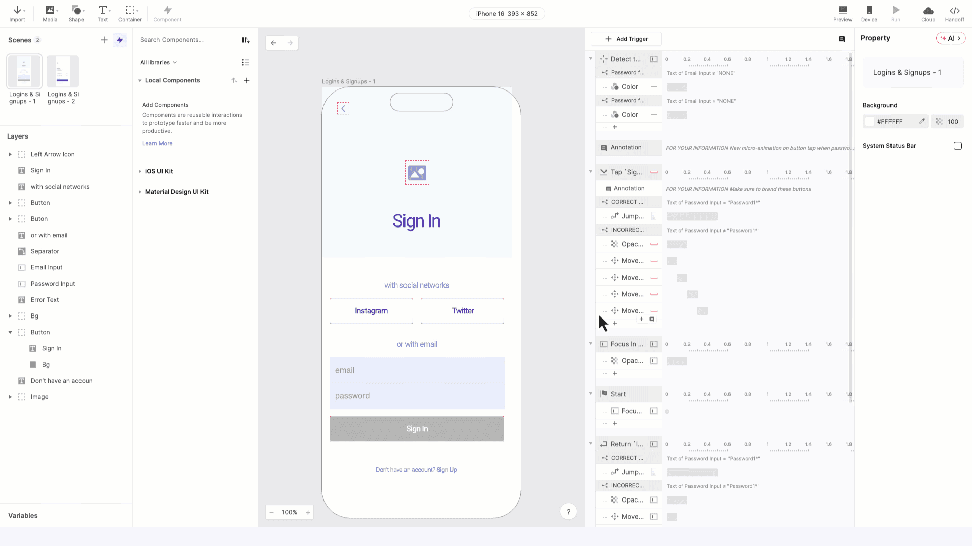 嵌套在触发器内的注释,用于记录特定响应或交互序列。可在交互片段之间创建,或将触发器级注释拖拽到某个触发器下方来创建。