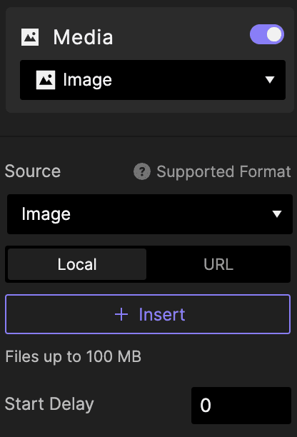 从您的设备中选择图片、视频或 Lottie,或从自托管 URL 导入一个。