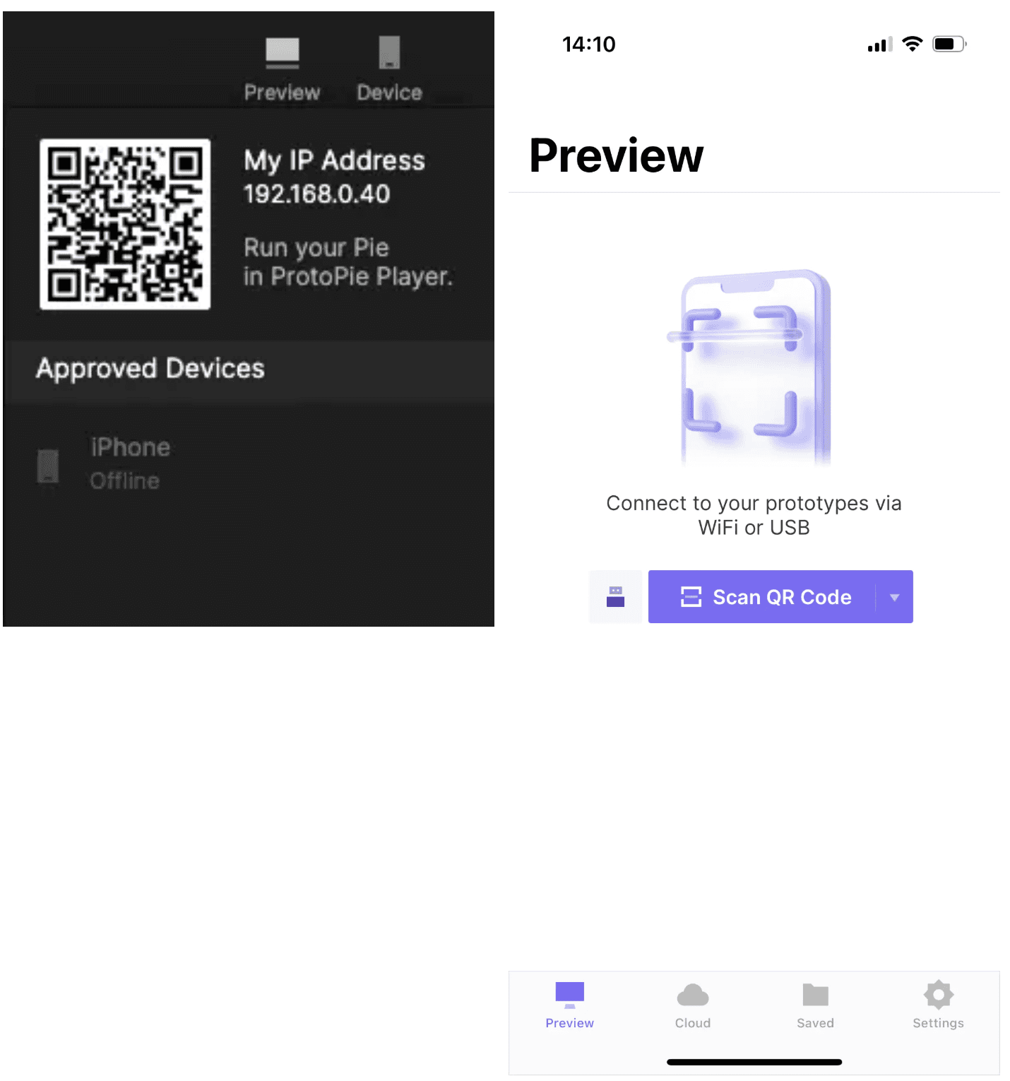 1. 通过扫描二维码连接 ProtoPie Player