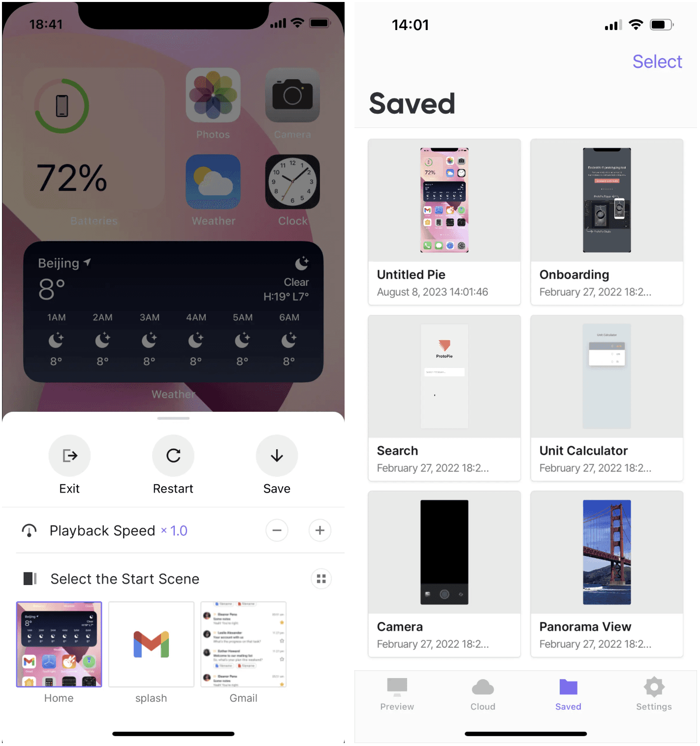 要保存从 ProtoPie Studio 打开的原型,请在 Player 应用中按照以下简单步骤操作: